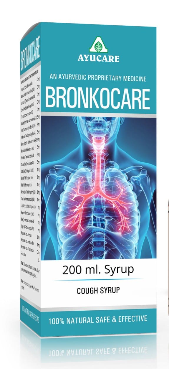 Ayurvedic Cough Syrup | Herbal Cough Syrup Ingredients: Tulsi, Vasa, Baheda, Somvali, Kantakari, Gojhiva, Sunth, Yestimadhu etc. Packing: Bronkocare Syrup is available in 100 ml, 200 ml & 400 ml PET Bottle. Dosage: 2 teaspoonful twice or thrice a day or as directed by the physician. Simultaneous use of Bronkocare cap gives satisfactory results.