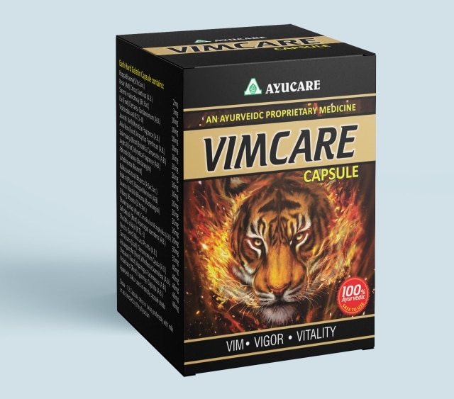 Each capsule contains: Roopya bhsma 2 mg, Kesar 3 mg, Swarna makardhwaj, Vishtinduk vati, Ela, Javantri and Akkalkara each 10 mg, Salampanja, Jayphal, Brahmi, Shankhpushpi, Abharak Bhasma, Loha Bhasma, Kukkutandatwak Bhasma, Swarna makshik bhasma and Tribang Bhasma each 20 mg, Safedmusli 30 mg, Shuddha shilajit 35 mg, Kaucha, Tamalpatra, Ashwagandha, Shatavari and Vidarikand each 40 mg Dose: 1 capsule twice a day preferably with milk or as directed by the physician. Packing: Vimcare capsule is available in container of 10’s, 30’s, 100’s & 500’s. The Neuro-dynamic of the era. Increases vitality, rejuvenation, non-hormonal way towards coitus harmony. Indication: Sexual weakness, increases quantity and quality of semen, spermatogenesis, loss of vim, vigor & vitality, poor erection, sexual exhaustion, depressed libido, lack of confidence & frigidity.